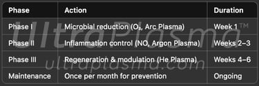 The UltraPlasma™ multi-platform plasma system represents a paradigm shift in the treatment of all acne types, offering a non-invasive, gas-modulated, and layer-specific therapeutic approach. By integrating arc, argon, and helium plasma emissions with an advanced software-defined spectral output, UltraPlasma™ delivers highly targeted effects across the epidermis, dermis, and hypodermis. The generation of controlled reactive gases such as ozone and nitric oxide enhances antimicrobial action, sebaceous regulation, and tissue regeneration, while simultaneously supporting microcirculation and immune modulation.
